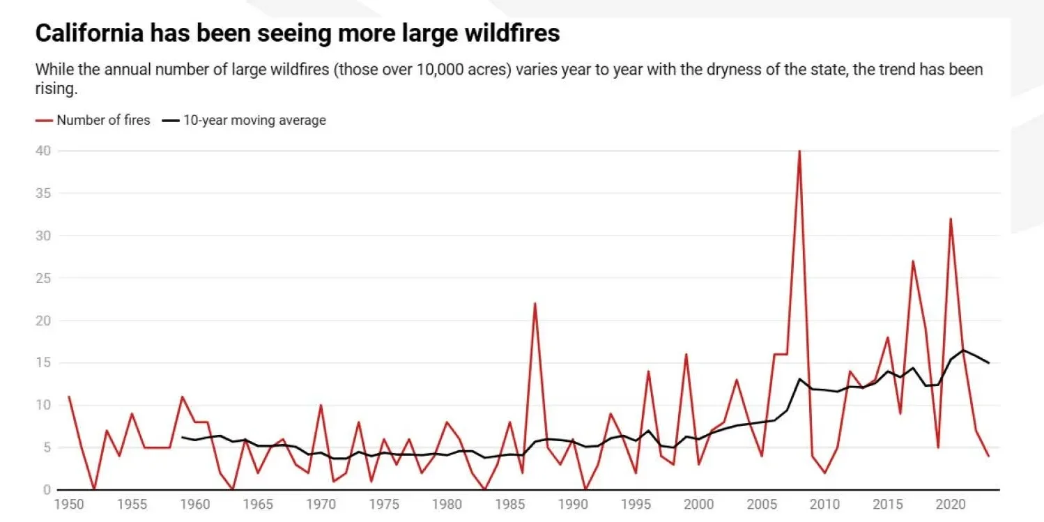 In the years leading up to the fires, two consecutive wet seasons saw unusually heavy rainfall that spurred lush vegetative growth, but these years were followed by an acutely hot, dry summer that dried out the vegetation and turned it into abundant tinder.